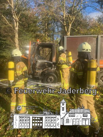 Am heutigen Tag wurden alle vier Feuerwehren der Gemeinde Jade – Jade, Schweiburg, Jaderberg und Südbollenhagen – sowie die Feuerwehr Rüdershausen zu einem brennenden Lastkraftwagen alarmiert. Dieser Stand auf dem Parkplatz des Sportplatzes in Mentzhausen.